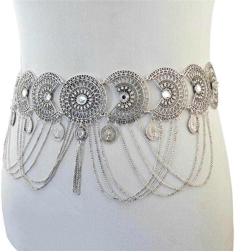 - Style: Retro/Boho style coin and tassel belt.